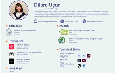 To achieve this, use descriptive subtitles to segment information into clear blocks, bullet points to highlight key achievements and learnings, and generous white space to give readers moments of pause and reflection. This approach creates a visual dialogue that invites users to explore your story, making each section feel accessible and relevant while naturally showcasing your professional evolution.
